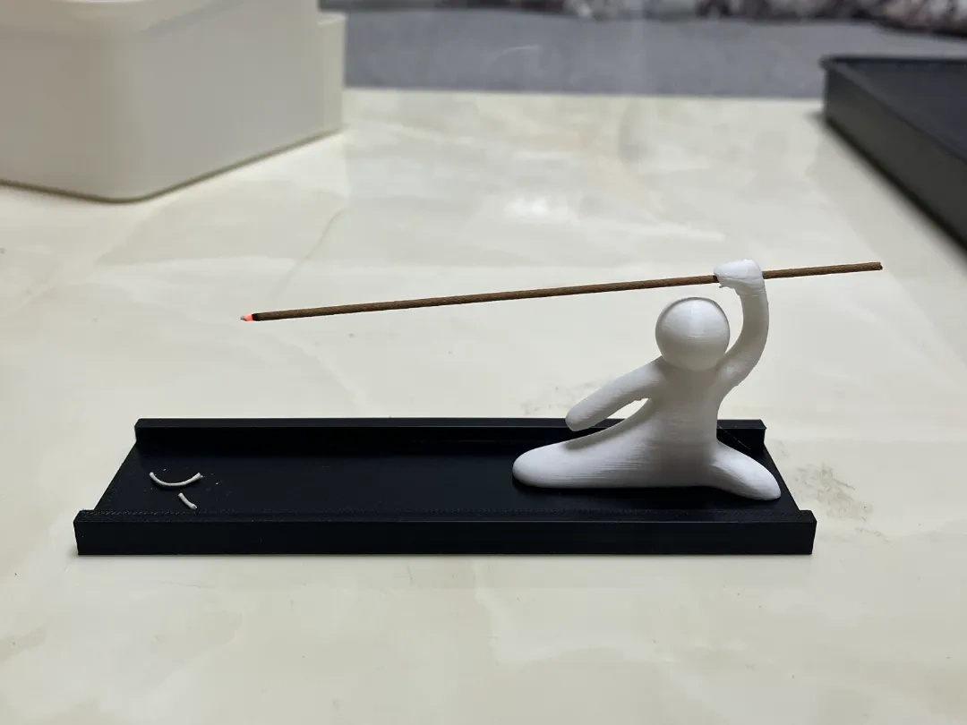 Um porta-incenso com uma atmosfera muito poética, que pode ser visto como uma pessoa sentada em um barco lançando a vara de pescar, ou como alguém praticando artes marciais. O diâmetro do furo do porta-incenso é de 2,4 mm.